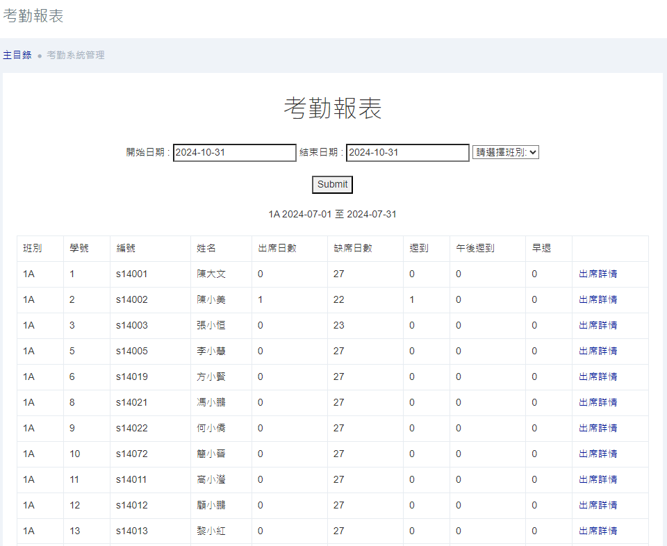 匯出報表功能展示出席、缺席、早退、遲到等紀錄
