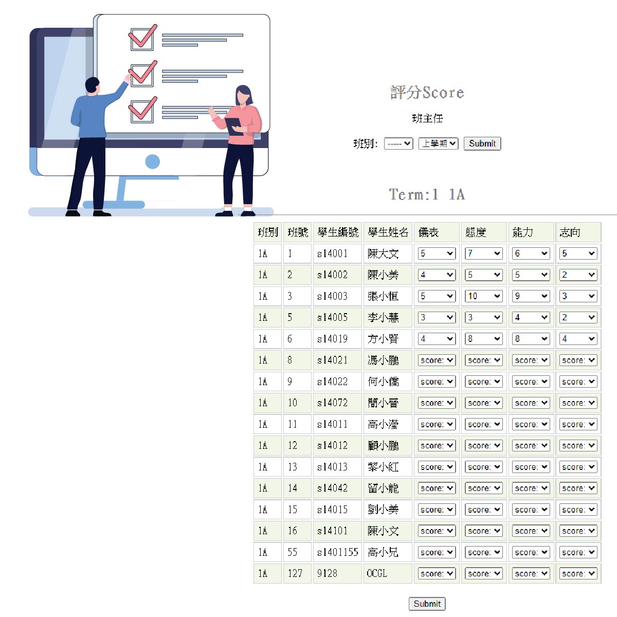 不同科目的教師可於系統上為學生進行評分,並會自動整合資料及可匯出評級分數。